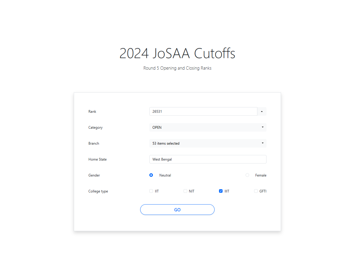 Make college hunt easy after JEE. Look up JoSAA cutoffs with custom filters and get personalized result based on your rank.
